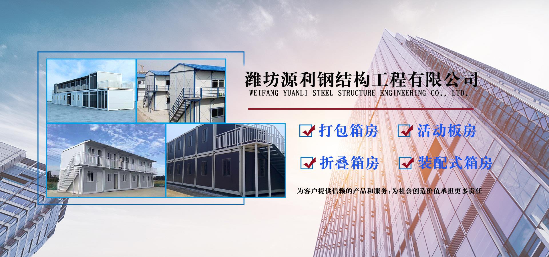 濰坊源利鋼結(jié)構(gòu)工程有限公司成立于2015年,是一家從事活動(dòng)房屋,鋼結(jié)構(gòu)設(shè)計(jì)、制作、安裝為一體的公司。公司坐落于風(fēng)景秀麗的藍(lán)寶石之鄉(xiāng)昌樂(lè)開(kāi)發(fā)區(qū),占地約60畝,年加工生產(chǎn)能力到40萬(wàn)平米,現(xiàn)已發(fā)展成本地較大的鋼結(jié)構(gòu)企業(yè),同時(shí)也已跨入集成房屋研發(fā)、推廣企業(yè)行列。公司配備了全套的箱房流水線生產(chǎn)設(shè)備,包含了全自動(dòng)冷彎成型設(shè)備、流水自動(dòng)涂裝線、沖壓型材生產(chǎn)線以及全套的配套設(shè)備,標(biāo)準(zhǔn)化、模具化生產(chǎn)加工,年生產(chǎn)5000套打包箱,產(chǎn)品保障。 公司主要產(chǎn)品有:鋼結(jié)構(gòu)工程加工、制作、安裝;各類(lèi)活動(dòng)板房、打包箱房、裝配式箱房、折疊箱房、圍擋、料棚、異型H型鋼、屋面板、墻面板、樓承板,C型鋼,Z型鋼;馬路隔離護(hù)欄等相關(guān)產(chǎn)品。